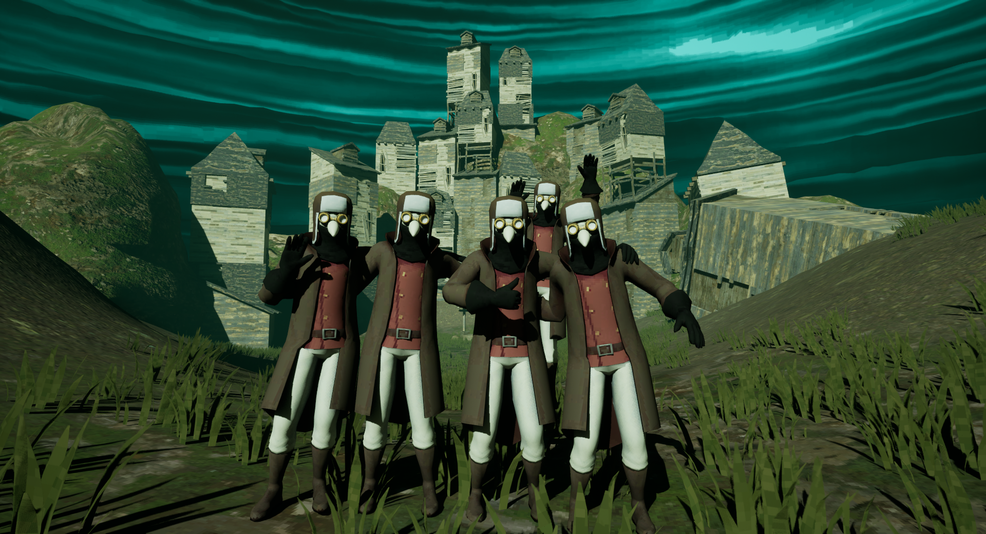 A light horror rogue-like cooperative game adventure through a post-apocalyptic world, gathering valuable relics on a steampunk inspired airship.